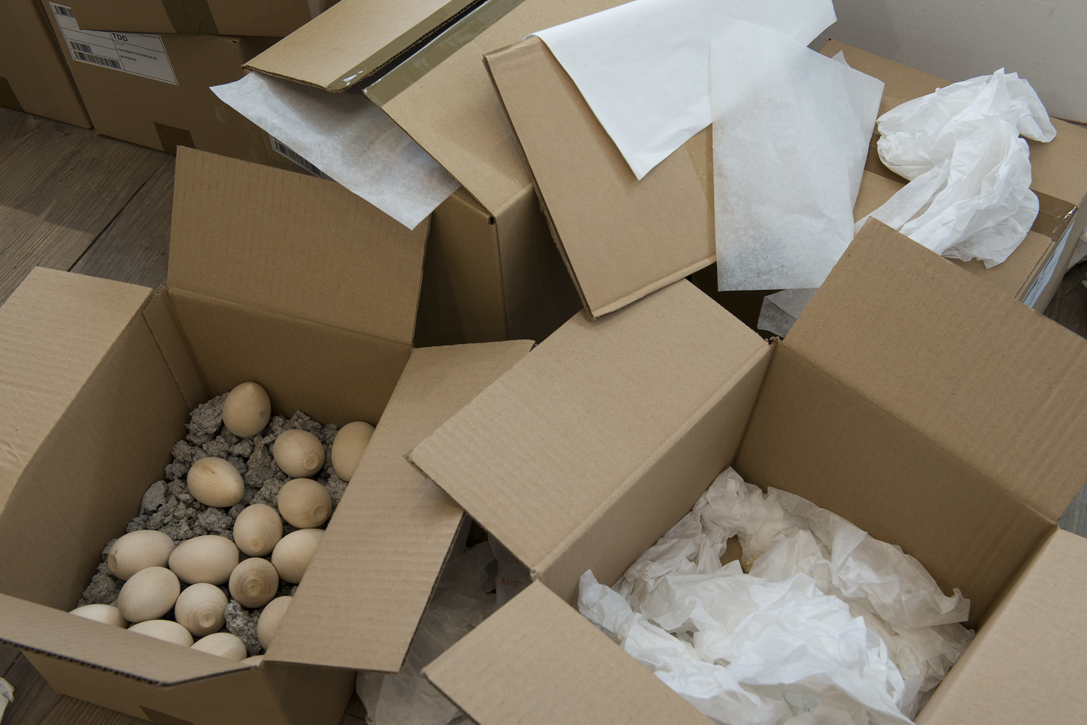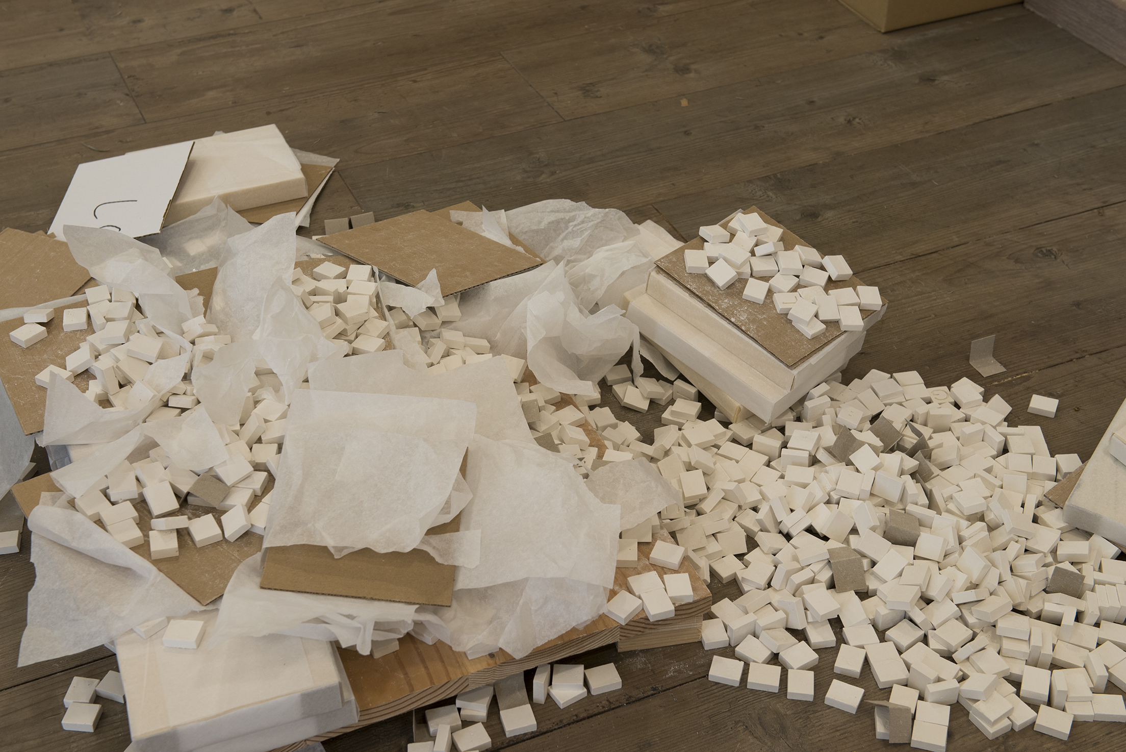 Tout doit disparaître est une exposition où le visiteur est libre de repartir avec les sculptures de son choix. C’est une installation que l’on regarde avec les mains, où on se sert dans les stocks, que l’on dépouille.