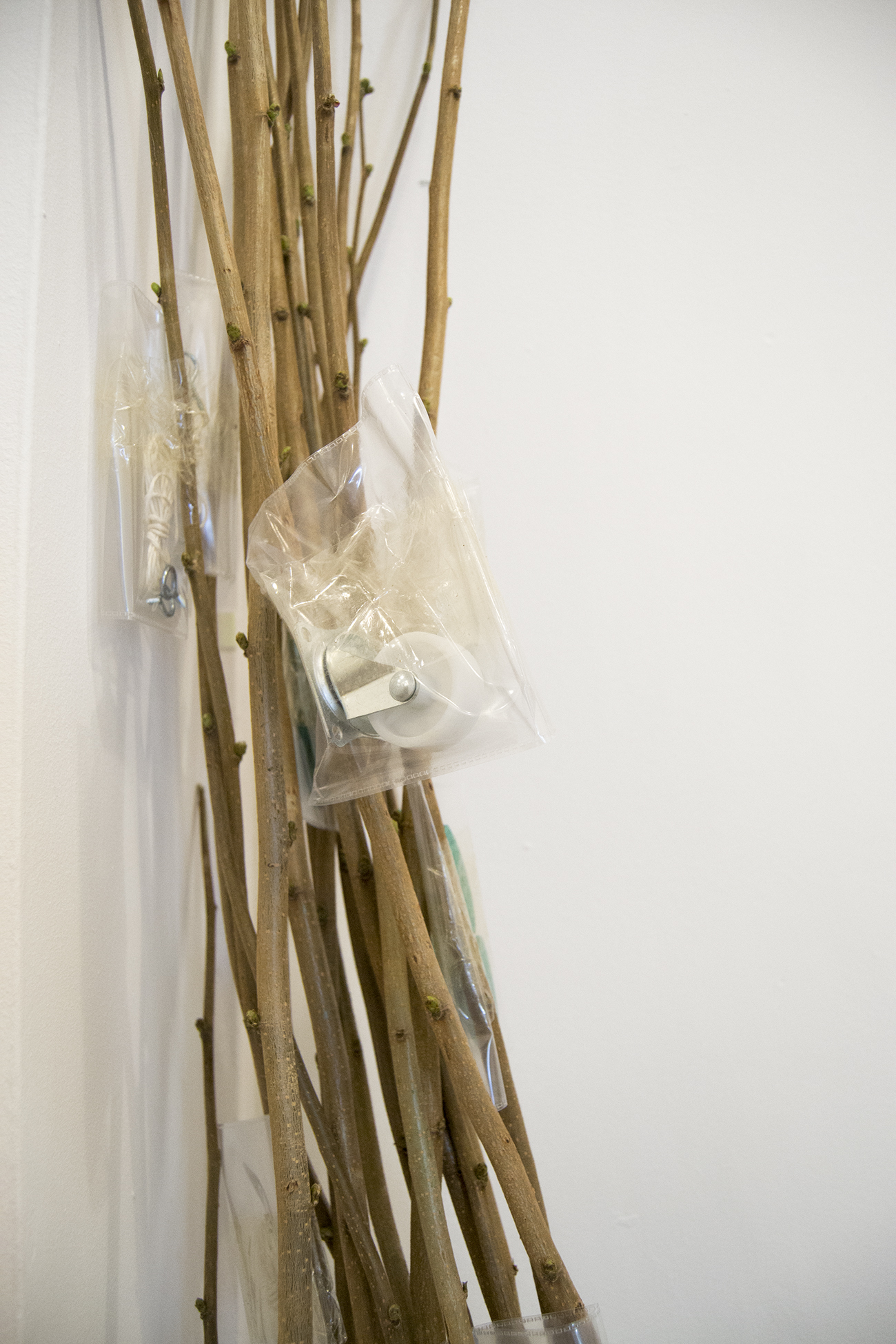 Les sculptures qui la composent sont produites en séries, de 2 à 50, 2000 exemplaires. À mi-chemin entre la quincaillerie, le grossiste et le magasin en liquidation totale, ce travail offre, sur un temps court,